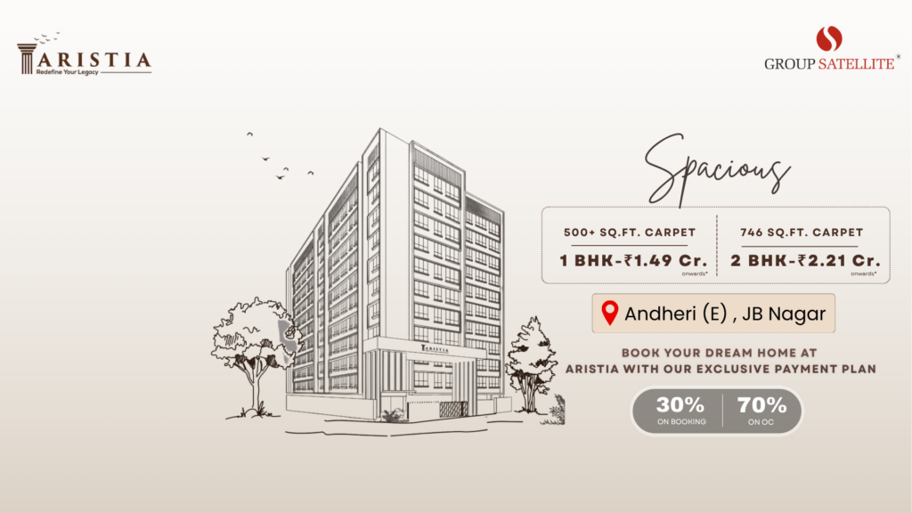 Satellite Aristia is a modern residential project located in JB Nagar, Andheri, offering a perfect blend of comfort, luxury, and convenience. Designed for families and working professionals, this project ensures a premium lifestyle with thoughtfully planned spaces. The project features well-designed floor plans to suit 2BHK and 3BHK apartments, giving you ample space and natural light. Residents can enjoy a wide range of amenities, including a clubhouse, gym, landscaped gardens, and children’s play area. Connectivity is a major advantage, with easy access to business hubs, shopping centers, schools, and hospitals. The project promises a hassle-free lifestyle with all essential facilities nearby.